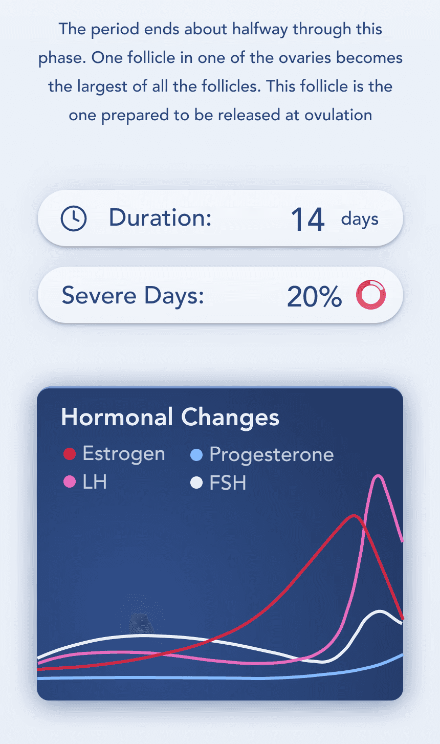 Graphs allowed users to instantly spot trends, track hormonal fluctuations, and anticipate symptoms without needing to wade through paragraphs of medical text.More than just improving usability, data visualization built trust. When users could see patterns for themselves, they felt more confident in the app’s insights. This approach transformed cycle tracking from a static log into an interactive, personalized health tool.