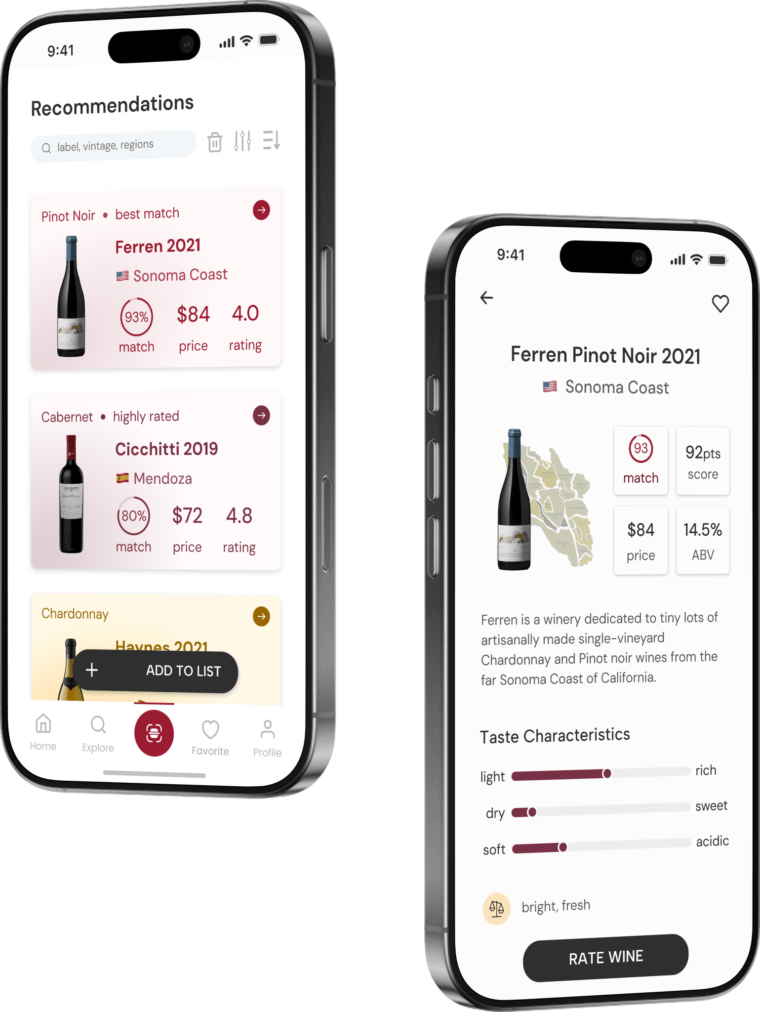 The wine industry is struggling—sales are plummeting, wineries are closing, and younger consumers aren’t engaging because buying wine feels like an expensive gamble. Confusing labels, critic-driven reviews, and an overwhelming number of choices leave buyers lost. By making wine selection effortless, transparent, and personalized, this app helps the industry reconnect with modern consumers and drive sales.