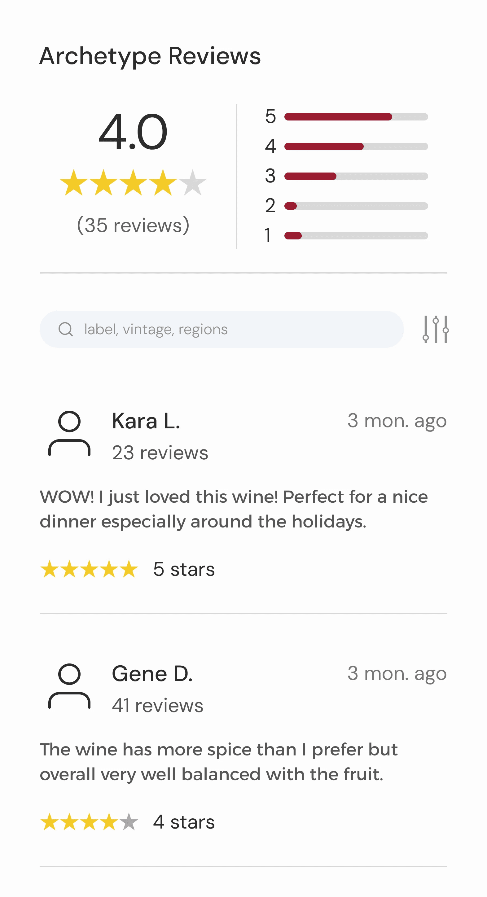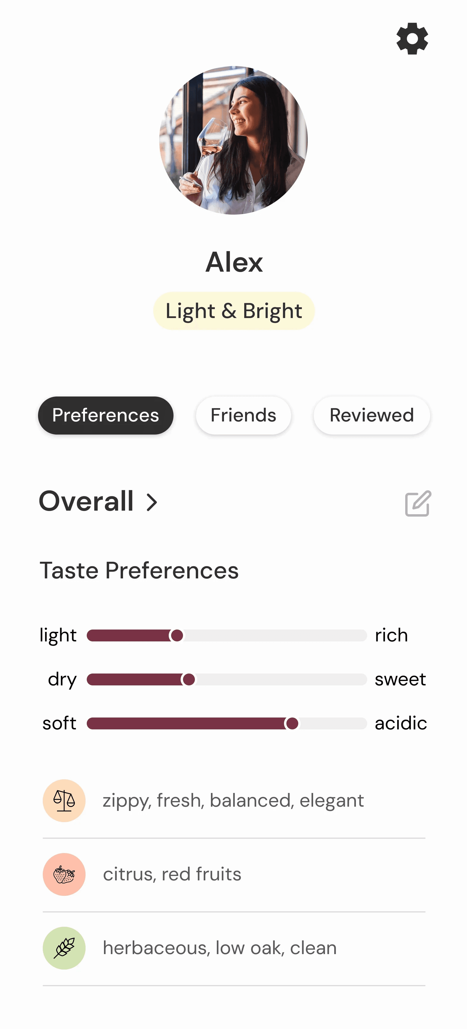 Decision: I designed a recommendation system that shows reviews from users with similar taste archetypes (like “light & bright” or “big & bold”) and lets users add friends to see what wines they have tried and liked.