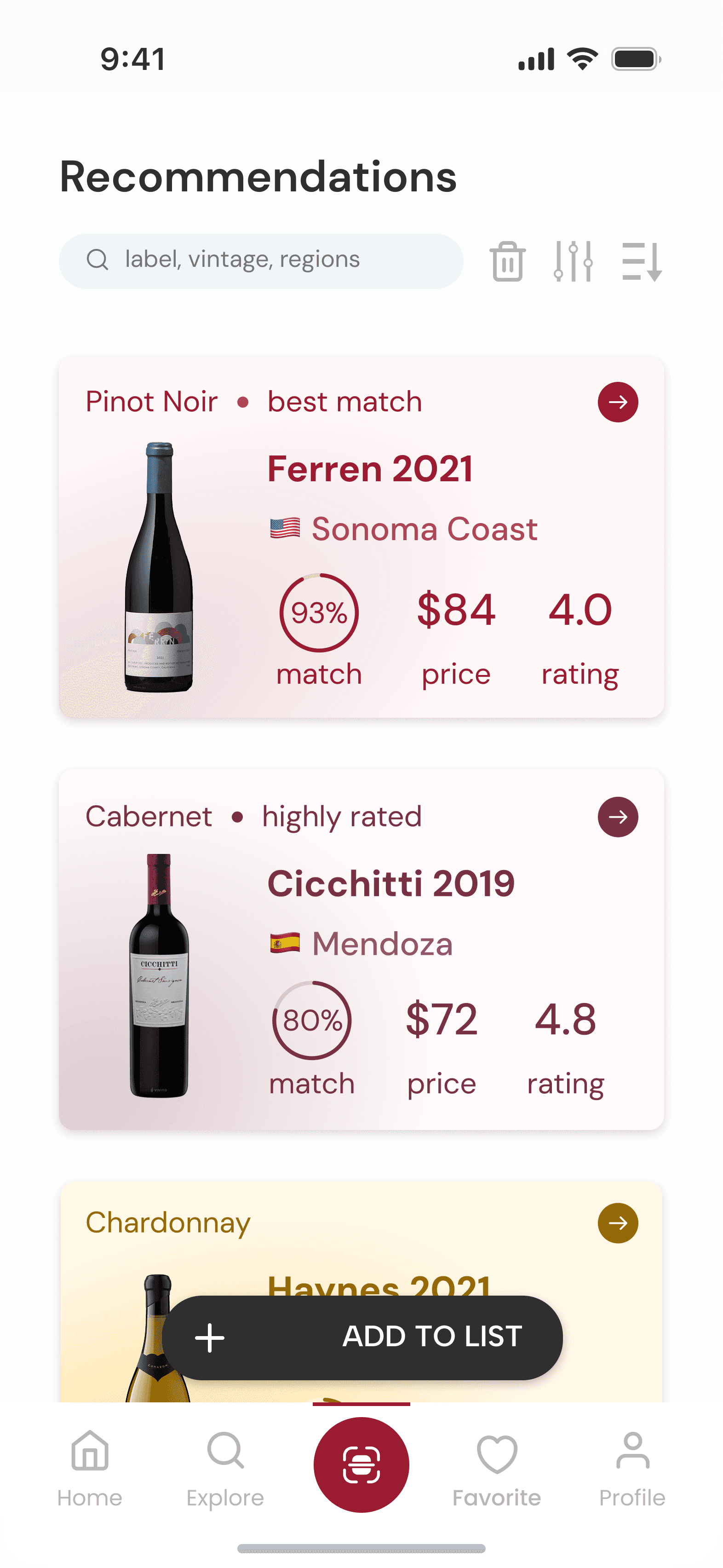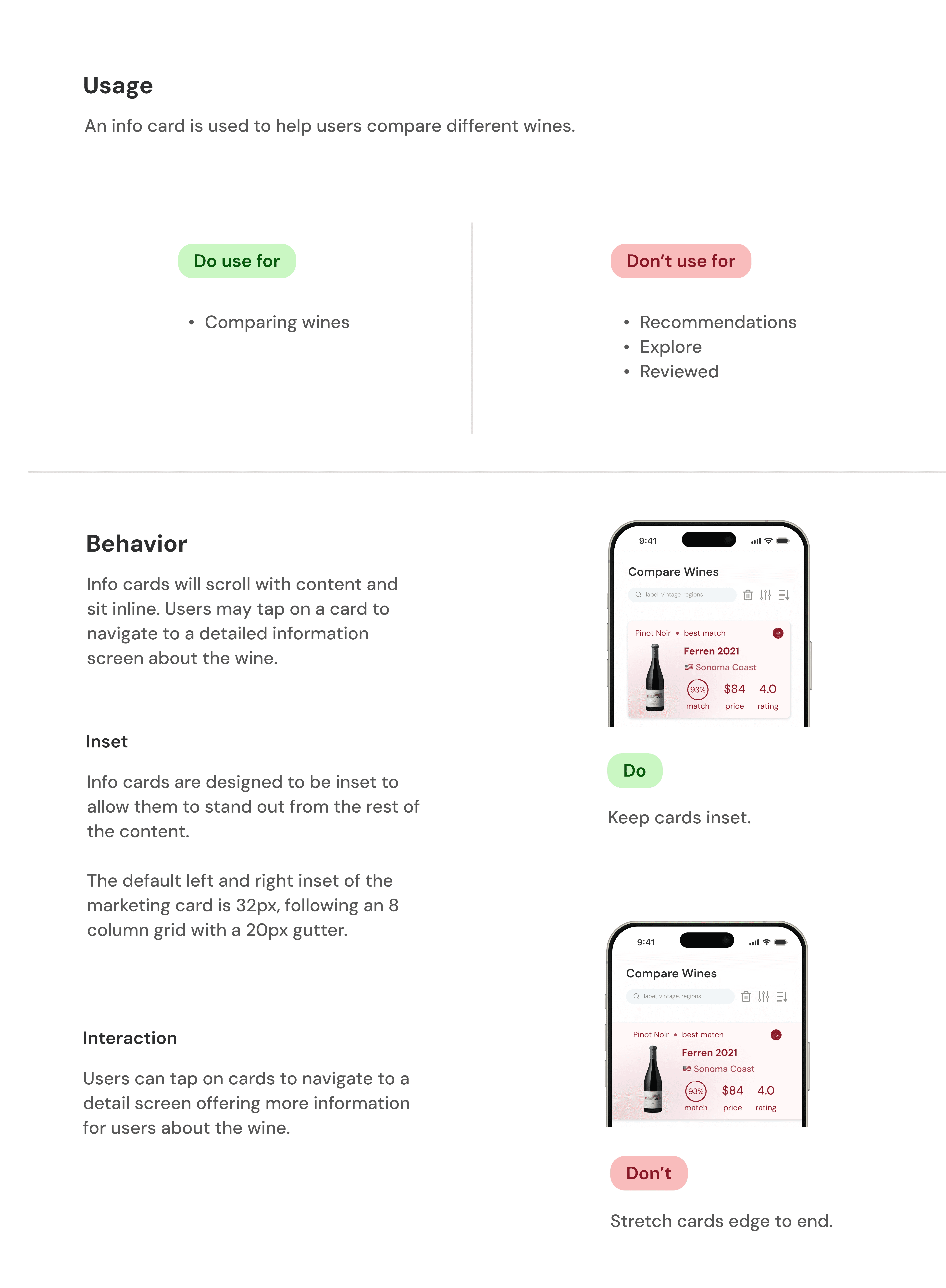 Decision: I introduced a side-by-side comparison feature so users could weigh wines by occasion, taste profile, and price.